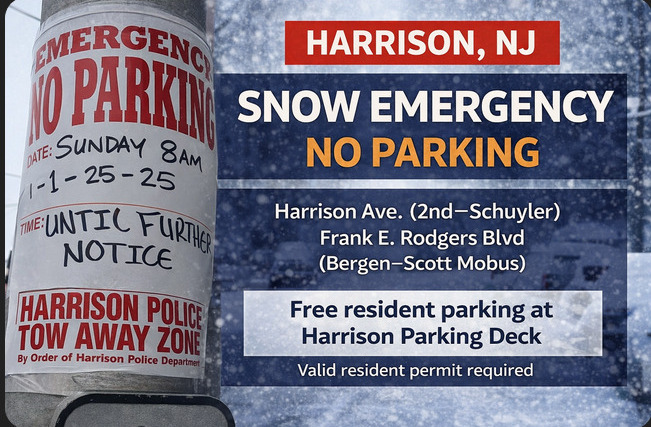Residents are strongly encouraged to double-check where their vehicles are parked and to take advantage of FREE parking at the Harrison Parking Deck, located across from the HARRISON PATH Station.